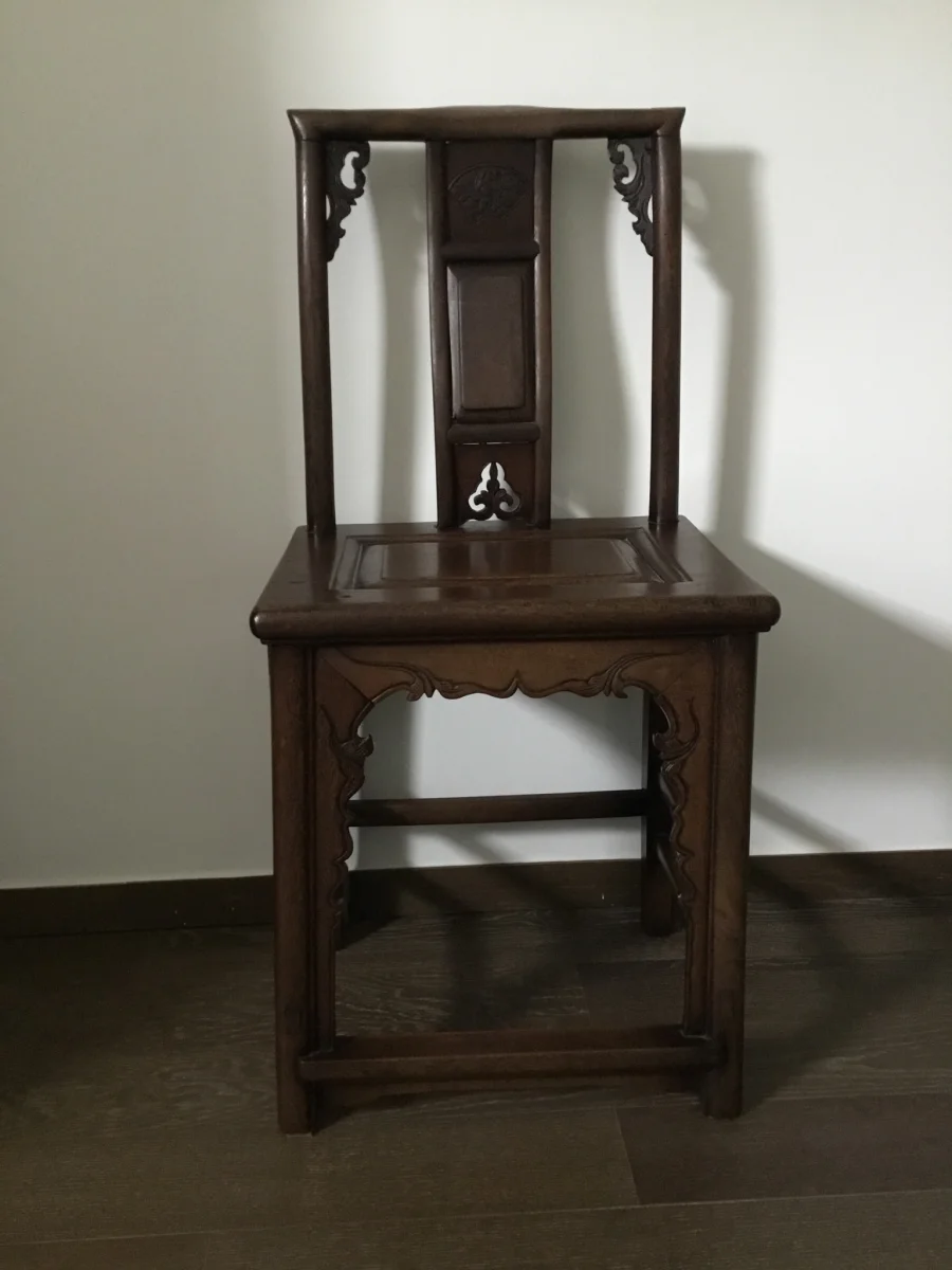 Chaise en bois ajouré. Dossier et pieds avants à décor de branchages. Hauteur : 97 cms